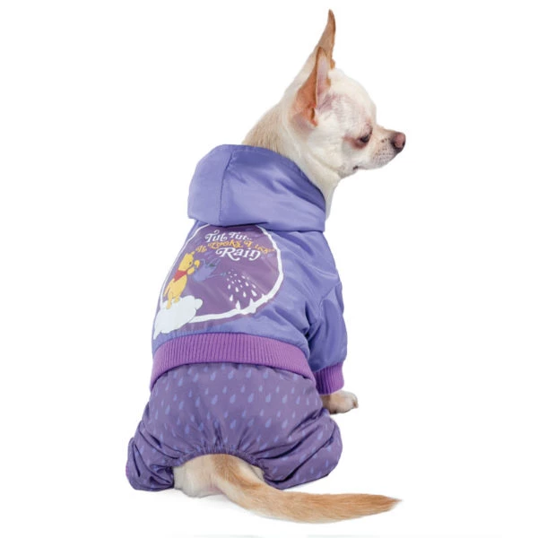 Дождевик из новой коллекции Disney Winnie the Pooh - это удобный и функциональный аксессуар для собак, который просто незаменим в дождливую погоду. Изделие защитит шерсть животного от дождя и грязи, а непродуваемая ткань - от сильного ветра. Костюм имеет стильный дизайн, а универсальный фасон не стесняет движений питомца во время прогулки. Дождевик также имеет капюшон и фиксируется при помощи заклепок на животе, а на штанинах предусмотрены удобные резинки, препятствующие попаданию грязи и влаги снизу.