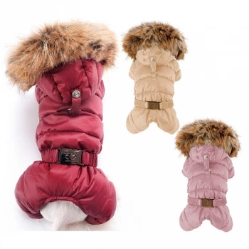 Новая модель зимнего комбинезона с капюшоном и мехом для девочек, с полностью закрытым животиком.