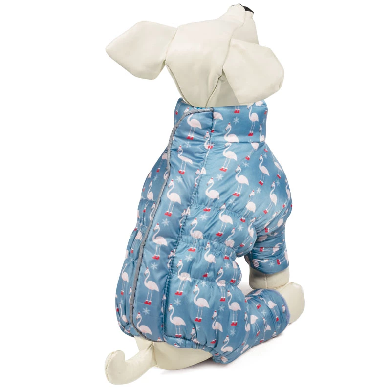 Утепленный комбинезон "Фламинго" с молнией на спине - это практичный, стильный и по-настоящему теплый аксессуар для собак. Такая одежда защитит шерсть животного от грязи, а непродуваемая ткань - от сильного ветра и холода. Благодаря продуманному до мелочей крою комбинезон садится "по фигуре" питомца и не стесняет движений во время прогулки за счет эластичной резинки на талии. Изделие с модным принтом и воротником застегивается при помощи молнии на спине, защищенной от попадания шерсти, грязи или налипания снега специальной планкой. Особенностью комбинезона является светоотражающая полоска, идущая по спинке изделия, - для максимальной безопасности животного на дороге. Изделие имеет закрытую зону на животе, а подкладка выполнена из флиса. Модель унисекс