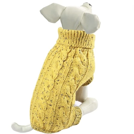 Свитер для собак "Косички" L, горчичный 35см. Теплый свитер классической вязки косичка - это удобный и функциональный аксессуар для собак, который просто незаменим в холодную погоду. Свитер, связанный из толстой пряжи, защитит вашего питомца от ветра и согреет в непогоду, а универсальный фасон не будет стиснять движения питомца во время прогулки. Изделие прекрасно сидит на животном благодаря манжетам для передних и задних лап, его также отличает воротник с широким отворотом. Такой свитер со стильным дизайном станет украшением гардероба вашего питомца. Материал: акрил. Цвет: горчичный. Размер по спинке 35см (L).