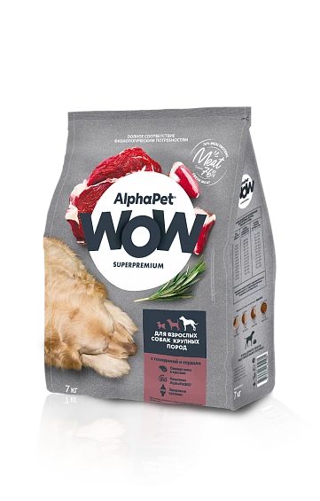 Сухой корм для собак крупных пород Альфа Пет (Alpha Pet) WOW Говядина/Сердце 7кг