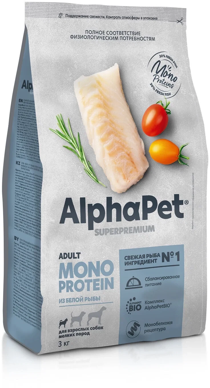 Здоровый и активный питомец – главная задача каждого хозяина. Команда AlphaPet® создает и производит полезные корма высшей категории качества Holistiс, давая возможность каждому владельцу быть уверенным в правильном выборе кормления для своего животного. AlphaPet® MONOPROTEIN на основе белой рыбы - благодаря единственному источнику животного белка, подойдет животным с пищевой непереносимостью.