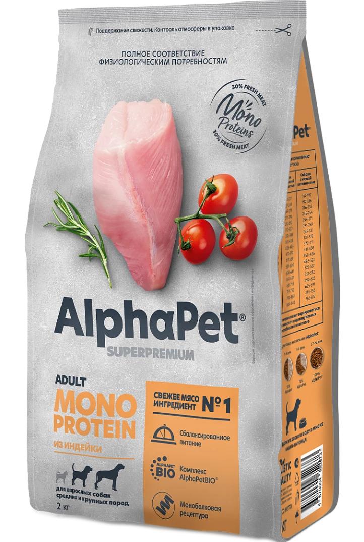 Сухой корм для собак средних и крупных пород AlphaPet (Альфа Пет) Monoprotein Индейка 12 кг