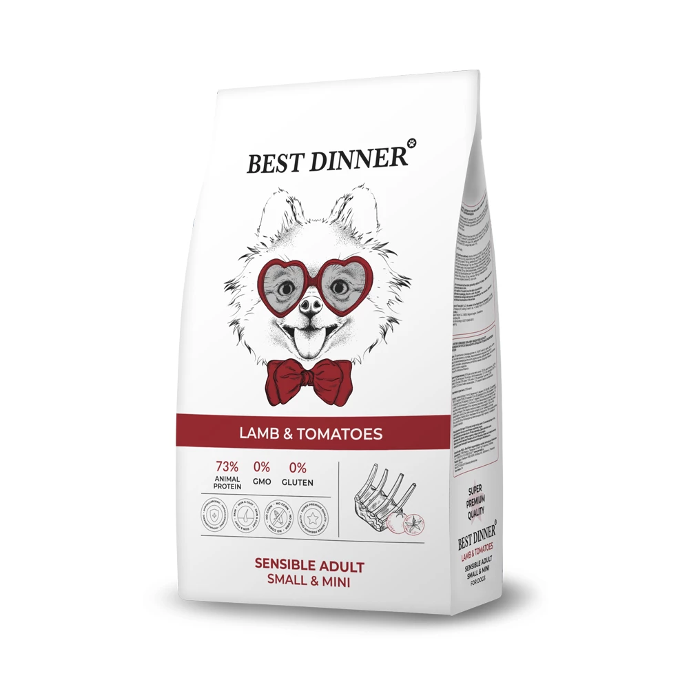 Полнорационный сухой корм для собак мелких пород склонных к аллергии и проблемам с пищеварением с ягненком и томатами