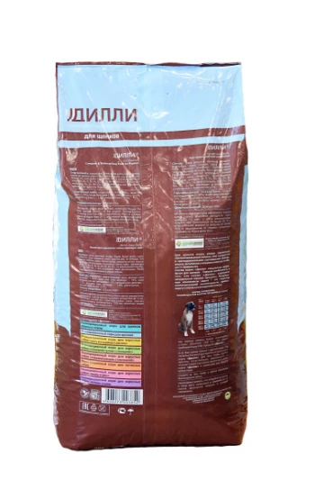 Игредиенты: злаки (кукуруза, пшеница, зародыш пшеничный, крупа рисовая, крупа овсяная), мясная мука, мясные продукты, шрот соевый, масло подсолнечное, глютен кукурузный, яичный порошок, жиры животного происхождения, рыбий жир, витамины, микроэлементы, консерванты и антиоксиданты, разрешенные к применению в РФ.