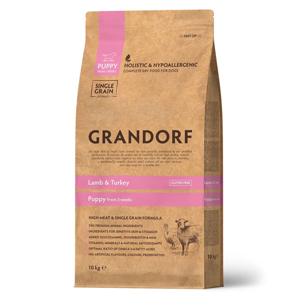 Состав Дегидрированное мясо ягненка (24%); Дегидрированное мясо индейки (23%); Цельнозерновой коричневый рис; Свежее мясо ягненка (7%); Свежее мясо индейки (7%); Жир индейки (7%); Порошок корней цикория; (натуральный источник пребиотиков: FOS и инулин); Мука из плода рожкового дерева; Сушеное яблоко; Свежее масло лосося (1%); Сушеный антарктический криль; (натуральный источник ЭПК и ДГК, 1%); Пивные дрожжи (природный источник MOS и бета-глюканов); Глюкозамин (1000 мг/кг); Хондроитина сульфат (1000 мг/кг); MSM (метилсульфонилметан, 40 мг/кг); Сушеная клюква, юкка Мохаве Сухой корм Grandorf Puppy Lamb & Turkey, сухой корм Для щенков и беременных сук, Ягнёнок с индейкой, 1 кг. Холлистик для щенков в возрасте от 3 недель, для беременных и кормящих сук. Идеально подходит для нежной пищеварительной системы щенков. Корм супер-премиум класса для щенков. Высокое содержание необходимых протеинов, полезных жиров, аминокислот и витаминов гарантирует оптимальную энергетическую ценность для здорового роста и развития щенков. Преимущества:+ 70% мяса в составе корма. Только животные белки. Только гипоаллергенные ингредиенты. Только мясо без субпродуктов. Комплекс хондропротекторов. Баланс соотношения Omega 6-3. Контроль уровня кислотности рН. Низкий уровень золы в составе. Натуральные антиоксиданты. Бережный способ приготовления. Низкозерновой состав, 29% белки, 18% жиры. Не содержит кукурузу пшеницу свеклу горох субпродукты яйца курицу куриный жир соль сахар, красители, ароматизаторы, сою и ГМО. Гранула 7мм.