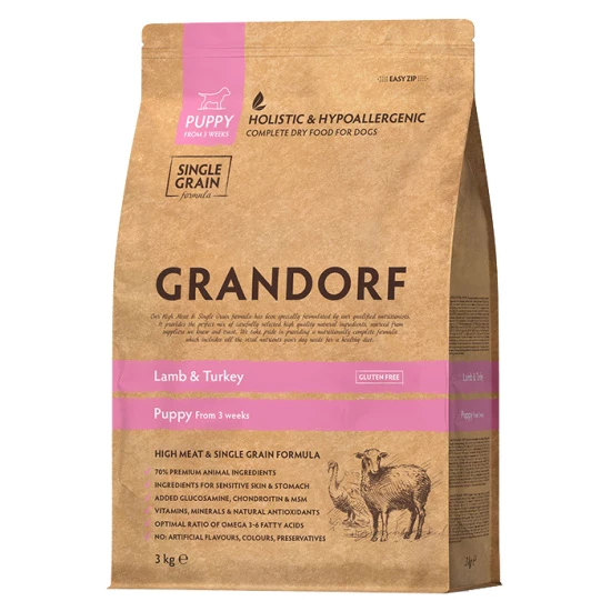 Grandorf Lamb&Rice Puppy ягненок с индейкой – натуральное, гипоаллергенное питание для щенков всех пород с 3-х недель, беременных и кормящих сук мелких и средних пород. Идеально подходит для нежной пищеварительной системы щенков. Тщательно отобранные, натуральные гипоаллергенные ингредиенты, помогают предотвратить аллергические реакции и пищевую непереносимость, обеспечивая иммунное и пищеварительное здоровье. Деликатный способ приготовления сохраняет все полезные свойства и питательные вещества натуральных ингредиентов обеспечивают отличное физическое состояние питомца.