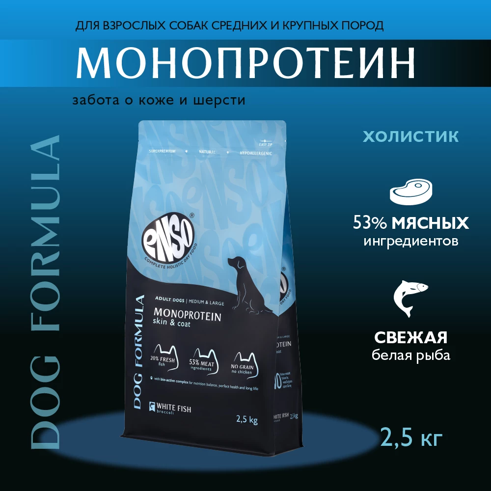 ENSO Dog Formula – гипоаллергенная линия сухих кормов класса суперпремиум холистик для ежедневного поддержания здоровья собак с высоким содержанием свежего мяса - 22%.
