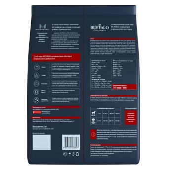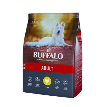 Полнорационный сухой корм Mr. Buffalo с курицей для взрослых собак всех пород. Оптимальное содержание белков, жиров и углеводов делает этот корм подходящим для собак средних и крупных пород. Именно на их потребности рассчитан и витаминно-минеральный премикс. Сбалансированный состав обеспечивает прекрасную форму взрослых животных, препятствуя набору лишнего веса и предотвращая заболевания суставов.