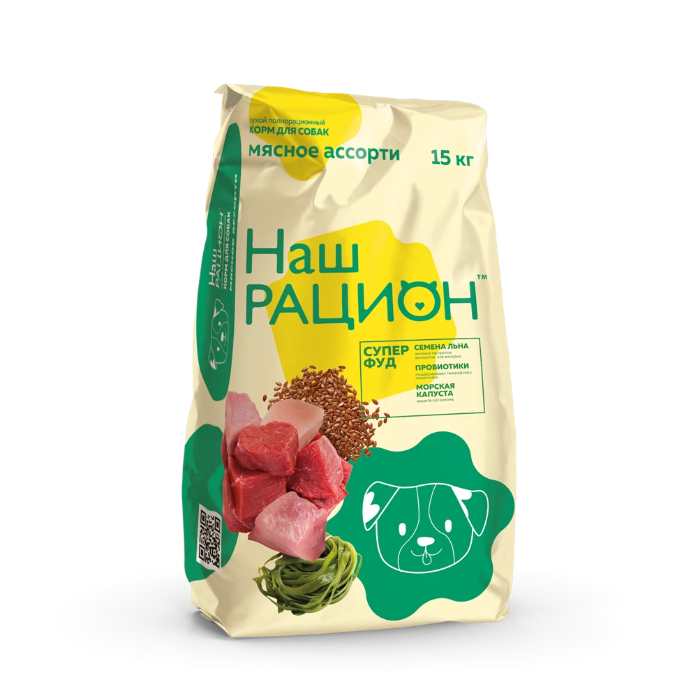 Наш Рацион - сухой корм класса Стандарт для полноценного ежедневного рациона, создан только из натуральных продуктов и высококачественных мясных ингредиентов. Качественная и бережная обработка сырья для сохранности полезных питательных веществ корма, позволяет легко перевариваться и усваиваеваться в организме. Уникальная добавка ProStor Bio Care – это комплекс пробиотиков и пребиотиков четвертого поколения, способствующий восстановлению микрофлоры кишечника, поглощает токсины и поддерживает иммунную систему организма. Не содержит мясокостной муки, искусственных добавок, красителей, ароматизаторов и ГМО. Подходит для собак с аллергией на высокопротеиновые корма