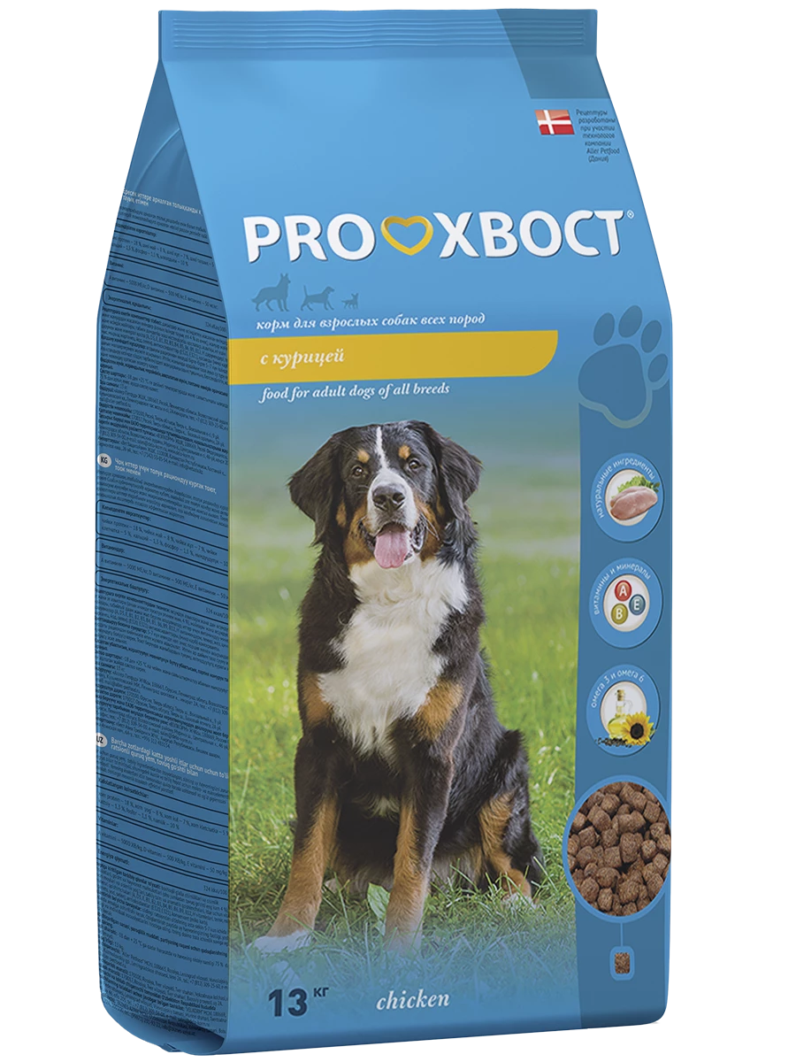 Сухой корм с курицей для собак всех пород. Полнорационный сбалансированный рацион с витаминно-минеральным комплексом рекомендован для ежедневного кормления взрослых питомцев. Собаки – предки волков! Даже самые вкусные овощи и каши не заменят им мясо. Корм Прохвост – обед, который понравится домашнему любимцу. В отличие от диких родственников ему не надо пробираться в курятник за свежим мясом. Курица включена в корм Прохвост. За свои полезные качества курица выбрана главным источником животного белка в корме. Куриное мясо легко переваривается и усваивается, в нем высокое содержание аминокислот. Для игр, подвижных прогулок требуются сила и энергия. Для этого в корме присутствуют злаки и крупы. А чтобы питомец не испытывал проблем с пищеварением, положены растительные продукты с содержанием клетчатки. Простая, на первый взгляд, форма гранул появилась благодаря датским диетологам, которые создали рецепт корма. Квадратные гранулы проще разгрызать, параллельно происходит очищение от зубного налета. Хозяину не надо ломать голову, сколько и каких витаминов давать животному. В корме микроэлементы добавлены строго в соответствии с суточной потребностью организма собаки. Корм Прохвост – полноценная еда для вашего домашнего хищника. Чтобы начать правильно кормить собаку, достаточно купить готовый корм и перестать подкармливать едой со стола. СОСТАВ Злаки и продукты растительного происхождения, мясо и продукты животного происхождения (в т. ч. из курицы мин. 4 %), животные жиры и растительные масла, натуральная вкусоароматическая добавка, витаминно-минеральная добавка для собак (витамины А, D3, Е, В1, В2, В3, В4, В5, В6, В9, В12, Н, железо, медь, цинк, марганец, йод, селен), антиоксиданты (Е320, Е321), консервант (мико карб).