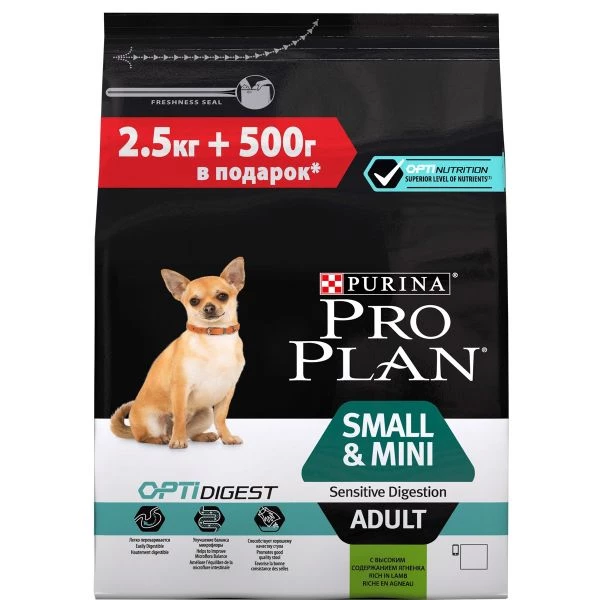 Корм легко переваривается, благодаря чему подходит для собак с чувствительным пищеварениемПребиотик активно способствует здоровью кишечникаКлинически подтверждено: улучшает баланс микрофлоры кишечникаСобственная технология приготовления позволяет сохранить полезные свойства куриного мяса Содержит высококачественный белок из ягненка. Промо-упаковка 2,5 кг + 500 г в подарок.