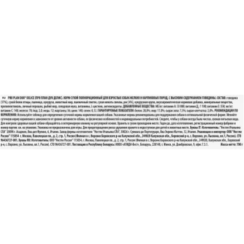 Состав: Говядина (17%), пшеница, кукуруза, сухой белок птицы, животный жир, пшеничный глютен, сухая мякоть свеклы, кукурузная крупа, рис (4%), минеральные вещества, вкусоароматическая кормовая добавка, пропиленгликоль, яичный порошок, рыбий жир, солодовая мука.
