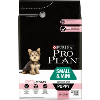 Сухой корм Purina Pro Plan для щенков мелких и карликовых пород с чувствительной кожей с комплексом OPTIDERMA с лососем и рисом
