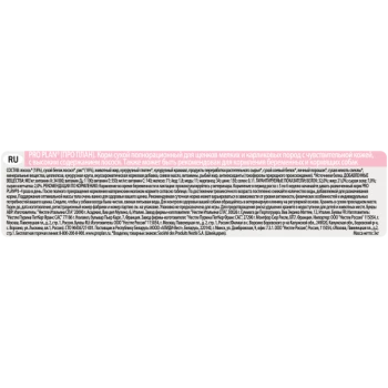 Состав: лосось* (18%), сухой белок лосося*, рис* (16%), животный жир, кукурузный глютен*, кукурузный крахмал, продукты переработки растительного сырья*, сухой соевый белок*, вкусоароматическая кормовая добавка, сухая мякоть свеклы*, минеральные вещества, кукурузная крупа, целлюлоза, соевое масло, яичный порошок*, витамины,рыбий жир, антиоксиданты (токоферолы природного происхождения)*. *Источники белка.