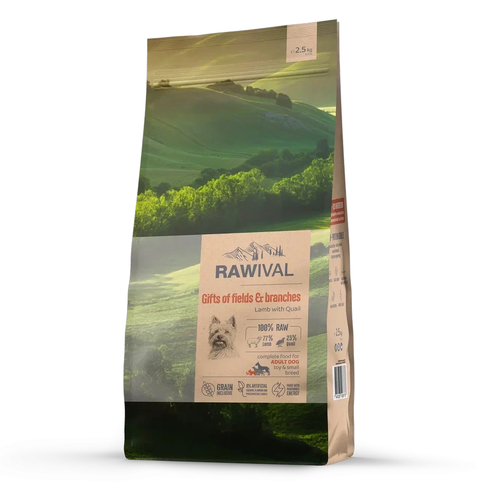сырой бескостный ягнёнок (27%), сырая бескостная перепёлка (8%), дегидратированный белок ягнёнка (6%), куриный жир, дегидратированный белок перепёлки (6%), дегидратированный белок курицы, гидролизованный белок рыбы (треска, пикша), рыбий жир (из лосося), спельта, коричневый рис, ячмень, овёс, просо, гидролизованный белок птицы (курица, индейка), куриные потроха (печень, сердце, почки), сушёные цельные яйца, льняное семя, сушёная свекольная пульпа, мука из люцерны, гороховая клетчатка, инулин цикория (0,4%), экстракт дрожжей (источник маннанолигосахаридов) (0,3%), фруктоолигосахариды (0,3%), сушёный аскофиллум узловатый, карбонат кальция, монокальцийфосфат, хлорид калия, хлорид натрия, сушёные пивные дрожжи, глюкозамин, хондроитина сульфат, сушёная спаржа, сушёная черника, сушёная клюква, сушёная ацерола, сушёный розмарин, сушёная куркума, сушёная календула, семена и шелуха семян подорожника, экстракт юкки Шидигера. В связи с особенностями производства готовый продукт может содержать в следовых количествах растительные и животные белки (курица, индейка, говядина, баранина, кролик, утка, свинина, рыба, коза, гусь), которые используются заводом в других рецептурах.