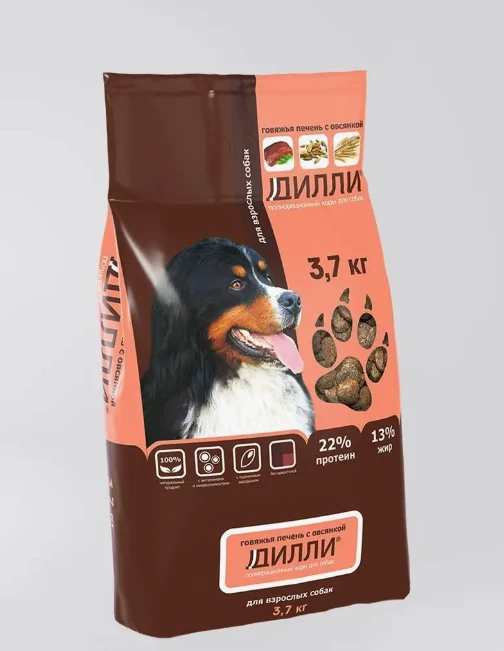 Корма «Дилли» – полноценное, сбалансированное и разнообразное питание для собаки. Соотношение в кормах белков, жиров, витаминов и микроэлементов удовлетворяет все потребности в питании растущих щенков и взрослых собак.Для производства корма используется высококачественные натуральные ингредиенты и высокий уровень производства, контролируемый специалистами аттестованной лаборатории завода, чтобы обеспечить высокие вкусовые качества без использования ароматизаторов и красителей. Корма Дилли изготавливаются в экологически чистом Алтайском крае на базе крупнейшего агропромышленного комплекса Алейскзернопродукт, из сырья местных производителей, на оборудовании ведущих мировых фирм — Wenger, Cusinato, Ricciarelli, Effytec. Сырье и готовые корма проходят тщательную проверку в собственной аккредитованной лаборатории. Корма сбалансированы с учетом рекомендаций FEDIAF (европейской ассоциации производителей кормов). Качество кормов Дилли подтверждено наградами – 100 лучших товаров России, медалью «Экологически безопасная продукция» и дипломом «Лучший Алтайский товар». СОСТАВ: злаки (пшеница, крупа овсяная, зародыш пшеничный), мясная мука, мясные продукты, гидролизованная печень, шрот соевый, масло подсолнечное, глютен кукурузный, жиры животного происхождения, рыбий жир, витамины, микроэлементы, консерванты и антиоксиданты, разрешенные к применению в РФ. Сырой протеин (белок), 22% (мин.)Сырой жир 13% (мин.),Сырая клетчатка 3% (макс.),Влага 8% (макс.),Кальций 0,6% (мин.),Фосфор 0,5% (мин.)