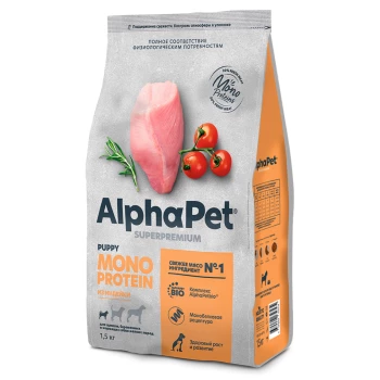AlphaPet® Monoprotein — Линейка питания на основе только одного вида мясного белка, для питомцев склонных к аллергии и животных с особенностями пищеварения: 30% свежего мяса/рыбы в составе, не содержат пшеницу, кукурузу и глютен, высокая поедаемость и вкусовая привлекательность