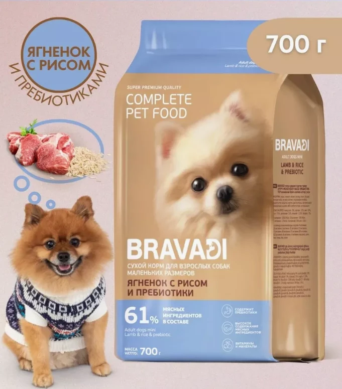 Сухой корм для собак мелких пород Bravadi (Бравади) Ягненок/рис 700гр