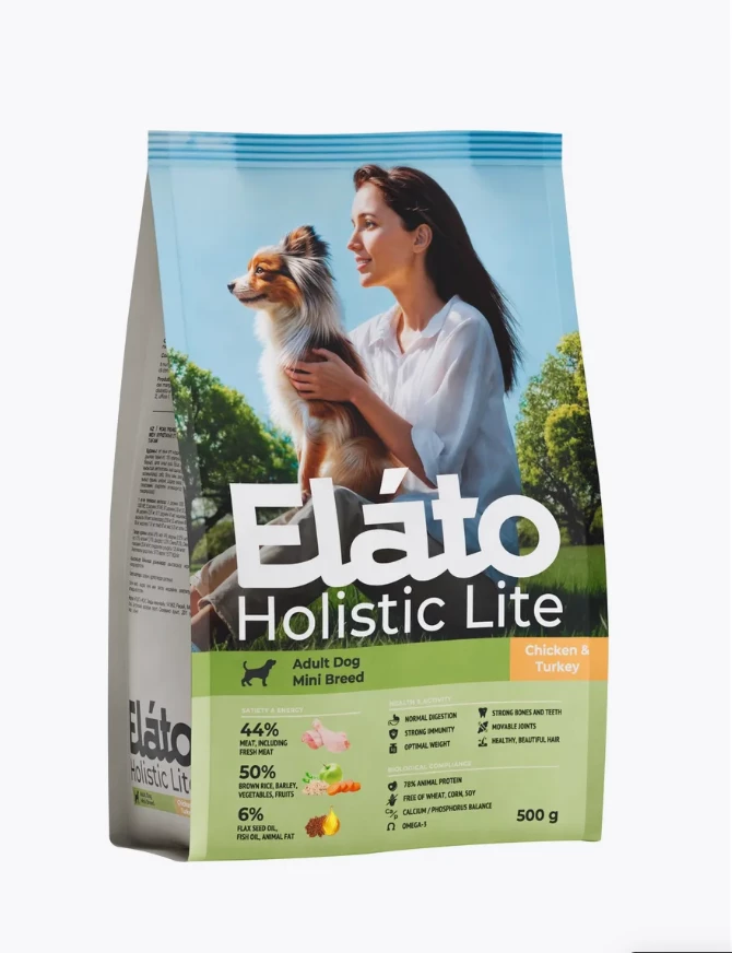 Сухой корм Elato Holistic Lite для взрослых собак мелких пород с курицей и индейкой разработан с учетом принципов правильного питания собак: содержит полноценные качественные источники белка (дегидрированное и свежее мясо), правильные медленные углеводы, специальные ингредиенты для укрепления здоровья, соответствует физиологическим потребностям в питании. Придает шерсти блеск и ухоженный вид за счет высокого содержания незаменимых жирных кислот Омега-3, рыбьего жира, семян льна, биотина и витаминов группы В, укрепляет иммунитет за счет полного комплекса витаминов и пивных дрожжей. Укрепляет кости и зубы за счет минералов и витамина D3, сохраняет подвижность суставов за счет глюкозамина и хондроитина. Состав: Мясо и мясные ингредиенты 44% (дегидрированное мясо курицы 26%, свежее мясо индейки 15%, гидролизованная печень 3%), ячмень, бурый рис, горох, животный жир, минералы, свекловичный жом, пивные дрожжи, витамины (в т.ч. холина хлорид), морковь, рыбий жир, яблоко, DL-метионин, черника, льняное семя, цикорий, юкка Шидигера, зеленогубый моллюск, глюкозамин, хондроитин, антиоксиданты (в т.ч. натуральные токоферолы). Энергетическая ценность: 3770 ккал/кг; 15,77 МДж/кг.
