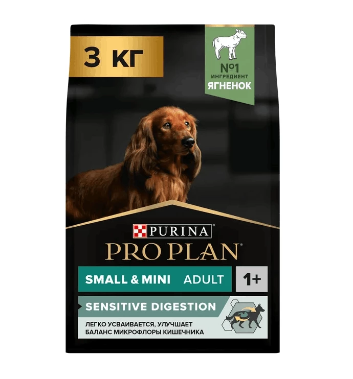 Изучая потребности собак на протяжении многих лет, команда квалифицированных ветеринарных специалистов и диетологов PURINA разработала сухой корм PRO PLAN Sensitive digestion (для чувствительного пищеварения) — ежедневный рацион с высоким содержанием ягненка для взрослых собак мелких и карликовых пород. Этот полнорационный корм сбалансирован по составу и помогает поддержать здоровое пищеварение.