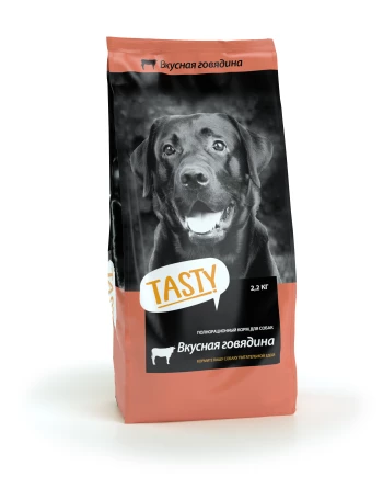 Вы можете выбрать из трех вариантов вкуса линейки кормов для собак: TASTY с курицей, TASTY с говядиной и TASTY с ягненком.