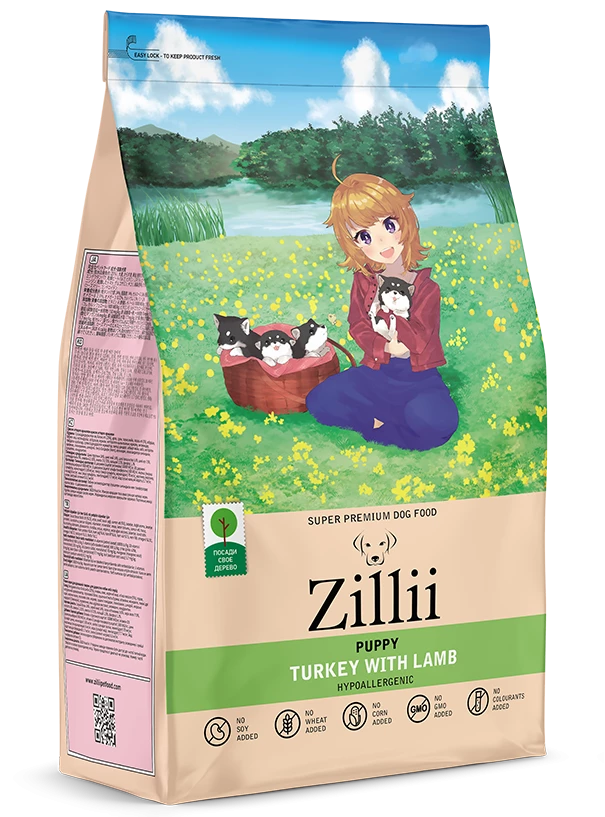 Молодой организм щенка требует много белков, жиров, витаминов и минералов для нормально роста и развития. ZILLII PUPPY Turkey with Lamb - отличное сбалансированное питание с содержанием всех полезных питательных веществ. Дегидрированное мясо индейки и свежее мясо ягненка в составе корма ZILLII PUPPY Turkey with Lamb полностью удовлетворят всем потребностям растущего организма щенка в животных белках. По содержанию такого вещества, как натрий, индейка существенно опережает говядину и телятину. Польза индейки в том, что благодаря натрию, происходит пополнение объемов плазмы в крови и обеспечиваются нормальные обменные процессы. Мясо ягнёнка низкокалорийное, очень легко усваивается и содержит достаточное для организма количество животных жиров, питательных веществ и микроэлементов. Белок ягнятины имеет полный набор необходимых аминокислот, обладает низкой жирностью, что делает её максимально полезной и при этом диетической. Мясо ягненка богато селеном, который стимулирует иммунную систему. В формулу ZILLII PUPPY Turkey with Lamb добавлены глюкозамин и сульфат хондроитина, укрепляющие связки и суставы щенка, а также цикорий - источник ФОС и экстракт юкки шидигеры, являющиеся натуральными пребиотиками и способствующие правильному пищеварению и усвоению питательных веществ в организме.
