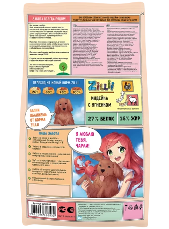Питание для собак всех пород должно учитывать особенности организма собак разных размеров и активности. Поэтому в такой рецептуре особое внимание должно уделяться к содержанию питательных веществ. Гипоаллергенная формула ZILLII ADULT ALL BREEDS Turkey with Lamb полностью способна удовлетворить всем потребностям организма собак разных пород в питательных веществах, витаминах и минералах. Рецептура изготовлена на основе дегидрированного мяса индейки и свежего мяса ягненка. Индейка, являясь диетическим мясом, обладает прекрасной усвояемостью и содержанием питательных веществ. Мясо ягненка низкокалорийное, очень легко усваивается и содержит достаточное для организма количество животных жиров, питательных веществ и микроэлементов. Белок ягнятины имеет полный набор необходимых аминокислот. Ягнятина так же имеет низкую жирность, что делает её максимально полезной и при этом диетической. Мясо ягненка богато селеном, который стимулирует иммунную систему. В полнорационной рецептуре ZILLII ADULT ALL BREEDS Turkey with Lamb присутствуют глюкозамин и сульфат хондроитина, поддерживающие связки и суставы животного, а также натуральные пребиотики, способствующие правильному пищеварению и усвоению питательных веществ в организме.
