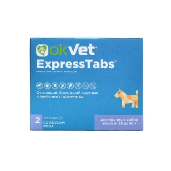 Таблетки для собак от 30кг до 60кг OkVet (Оквет) ЭкспрессТабс от блох, клещей, вшей, круглых и ленточных гельминтов (2 таблетки)
