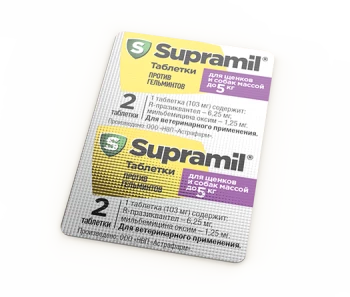 Таблетки для щенков и собак до 5кг Supramil (Супрамил) от гельминтов 2 таб
