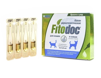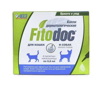 Капли для собак мелких пород и кошек FitoDoc дерматологические (4 пипетки по 0,6мл)