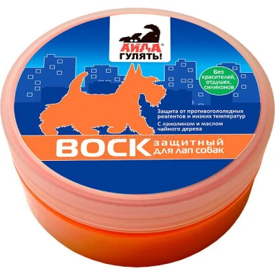 Воск для лап для собак «Айда Гулять! — Защитный» предназначен для эффективной защиты лап собак во время прогулки. - Содержит высокие концентрации натуральных компонентов. - Не крошится, не оставляет комочков; благодаря пластичной консистенции обеспечивает равномерное нанесение. - Без красителей, отдушек, и силиконов. - Защищает от воздействия противогололедных реагентов и нефтепродуктов - Препятствует обморожению, защищает от воздействия низких температур - Уменьшает скольжение лап по льду и на ринге - Предотвращает травмирование льдом, снегом, песком, гравием, асфальтом - Смягчает кожу подушечек лап - Пчелиный воск способен длительно удерживать тепло; обладает бактерицидными, противовоспалительными, ранозаживляющими и смягчающими свойствами; восстанавливает эластичность кожи. - Ланолин увлажняет и питает кожу лап. - Вазелин образует на поверхности кожи водонепроницаемую жировую пленку, обеспечивающую защиту от неблагоприятного воздействия противогололедных реагентов, бензина, мазута, низких температур; предотвращает образование трещин. Масло чайного дерева обладает мощным антисептическим и противогрибковым действием.