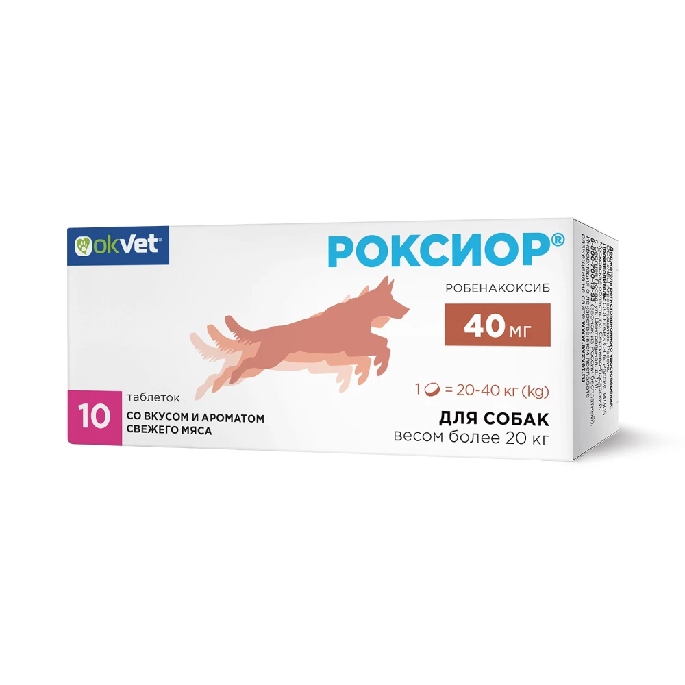 Таблетки для собак Роксиор болеутоляющий, противоспалительный 40мг 10 таблеток (1 блистер)