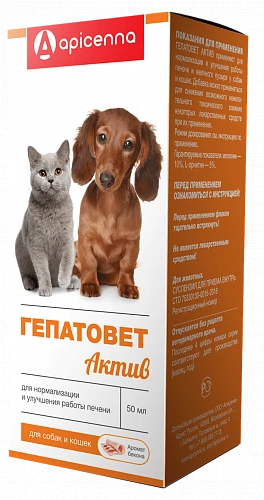 Гепатовет – гепатотропный лекарственный препарат, в состав которого входят эссенциальные фосфолипиды, флавоноиды, аминокислоты – метионин и орнитин. Комплекс биологически активных веществ в препарате улучшает функциональное состояние печени и её дезинтоксикационную функцию, способствует сохранению и восстановлению структуры гепатоцитов; нормализует уровень аммиака в организме животных, ускоряет регенерацию клеток печени. Гепатовет по степени воздействия на организм относится к малоопасным веществам (4 класс опасности по ГОСТ 12.1.007-76), в терапевтических дозах не оказывает эмбриотоксического, тератогенного, канцерогенного и сенсибилизирующего действия.