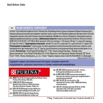 Кормовая добавка для кошек /котят/ и собак /щенков/ Purina Pro Plan Veterinary Diets FortiFlora для поддержания баланса микрофлоры и здоровья кишечника.