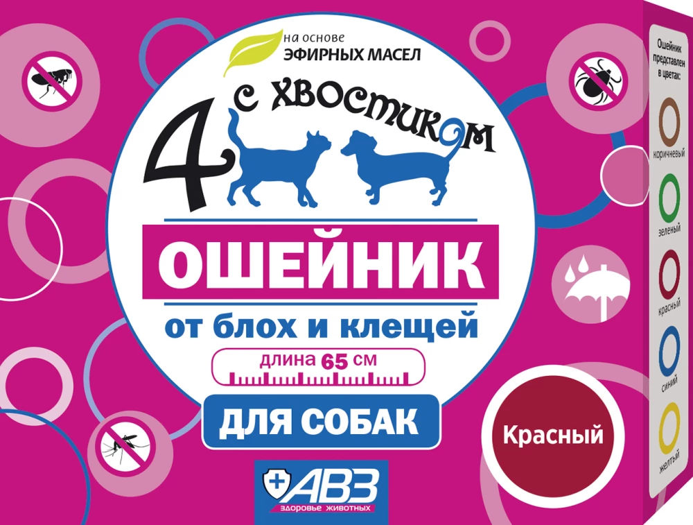 Ошейник репеллентный «Четыре с хвостиком» применяют собакам для защиты от блох, вшей, власоедов, комаров, иксодовых и чесоточных клещей. После вскрытия упаковки ошейник надевают на животное, подгоняя по размеру так, чтобы между шеей и ошейником оставался промежуток в 1 см, затем пропускают свободный конец ленты через фиксатор, а излишек ленты отрезают, оставляя конец 1,5-2 см.