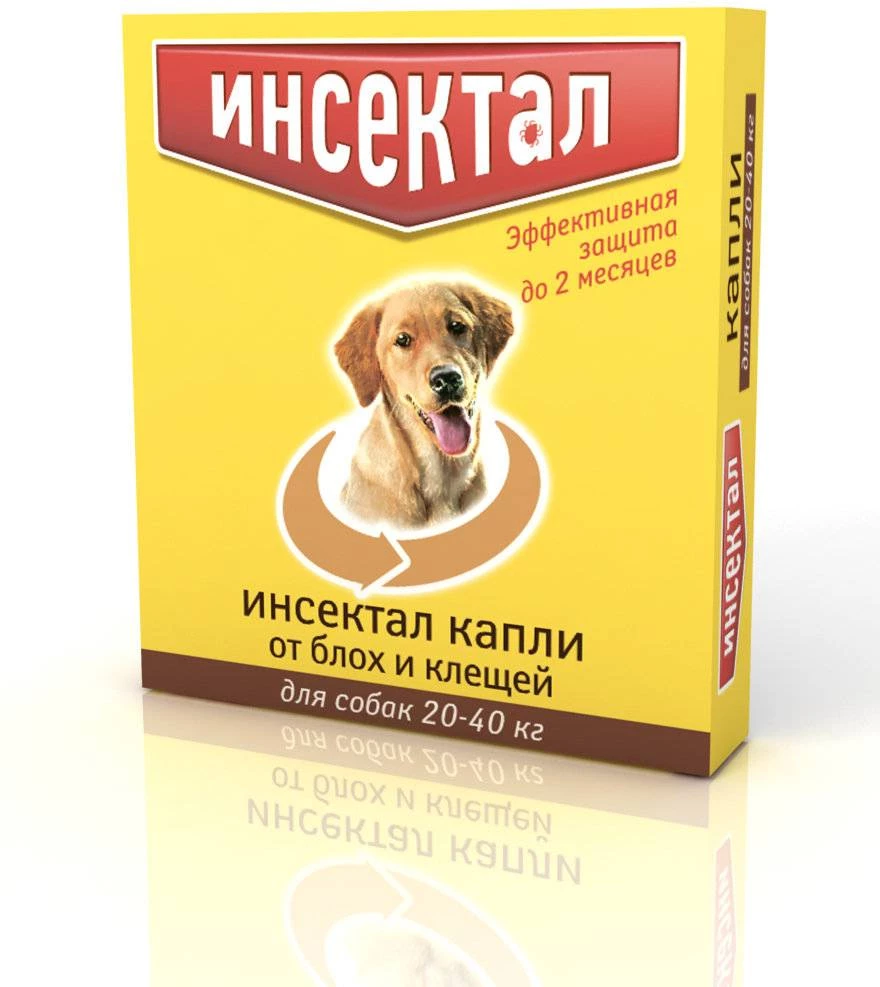 Капли на холку для собак от 20кг до 40кг Инсектал против блох и клещей (6шт)