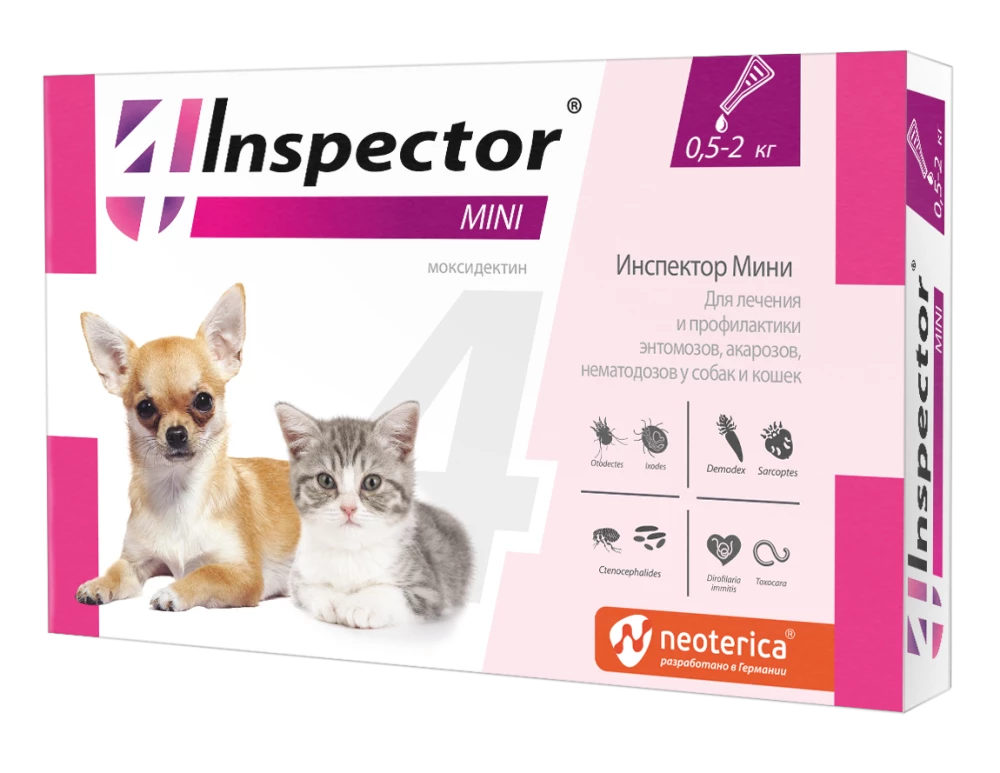 Inspector mini защищает от 14 видов внешних и внутренних паразитов.