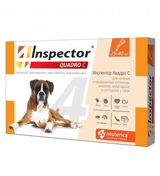 Капли на холку для собак от 25кг до 40кг Inspector QUADRO против блох, клещей и гельминтов