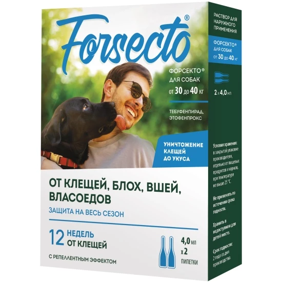 Капли на холку для собак и щенков Forsecto (Форсекто) от 30 до 40 кг (4,0мл)