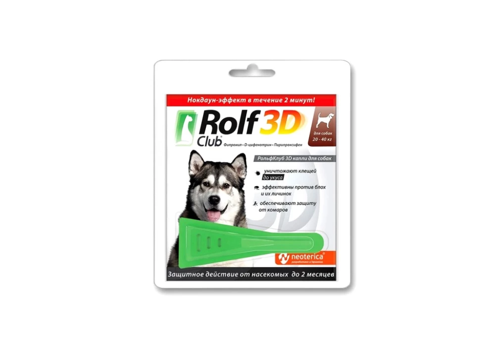 Нанесите RolfClub 3D на кожу в области холки (между лопатками), максимально раздвигая шерсть.