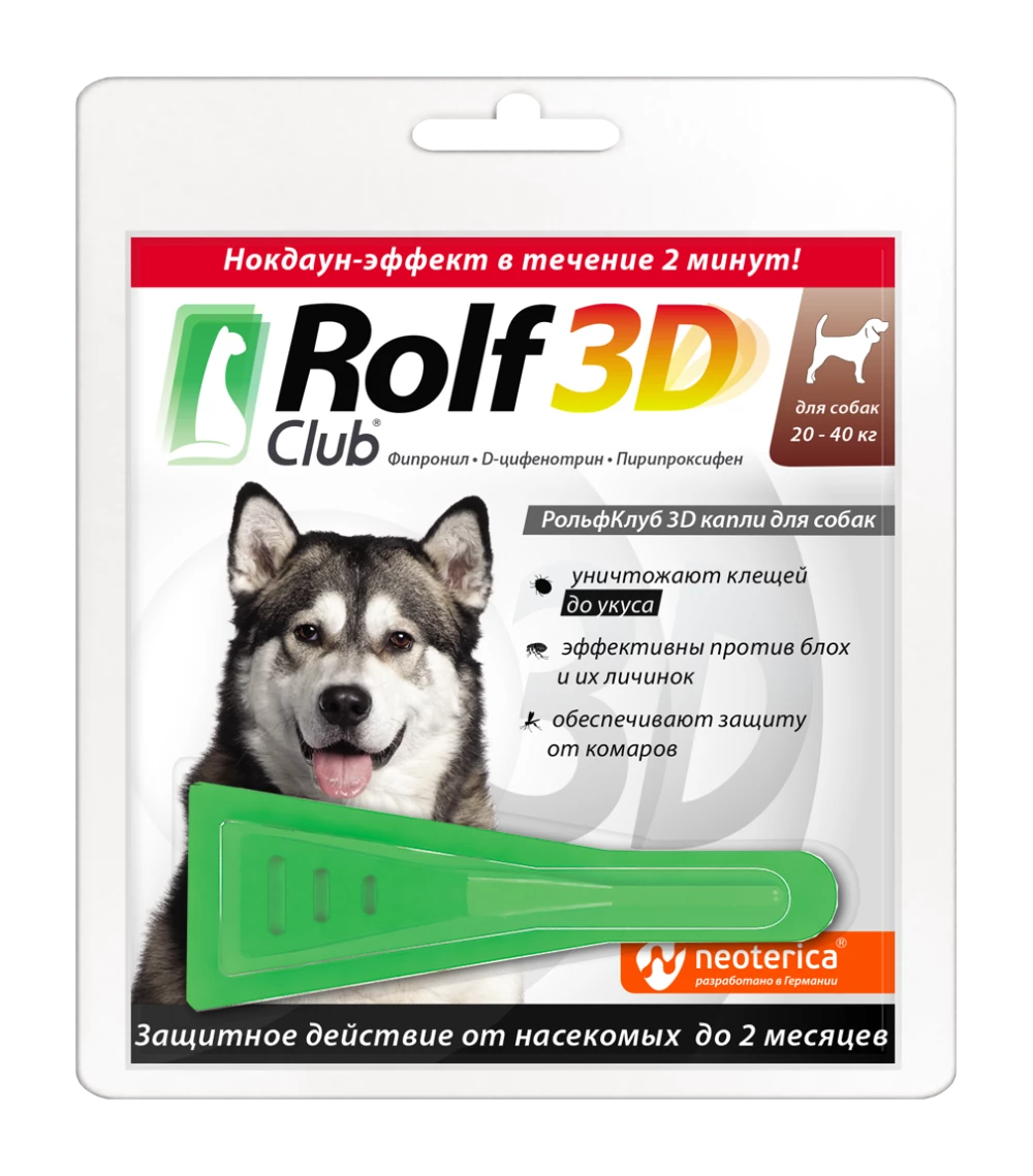 Капли на холку для собак от 20кг до 40кг RolfClub 3D Инсектал Комбо против блох и клещей