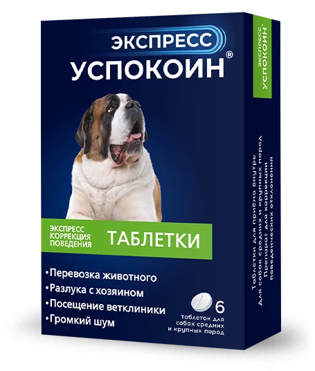 Экспресс Успокоин – единственный на российском рынке успокоительный препарат для быстрого и эффективного решения поведенческих проблем у собак в стрессовых ситуациях: