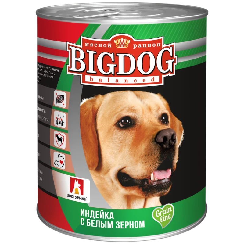 БИГДОГ (BIGDOG GRAIN LINE) - мясной корм для собак на основе натурального мяса, содержит полезные злаки и овощи.