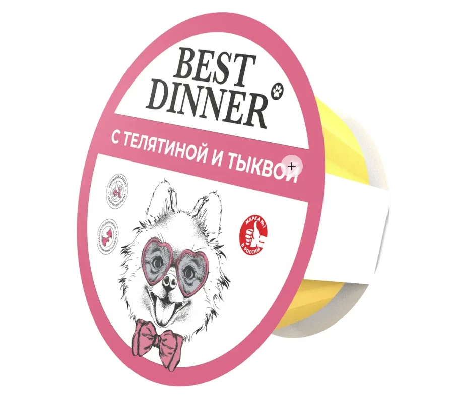 Влажный консервированный полнорационный корм Best Dinner для собак маленьких пород, телятина и тыква 100гр.