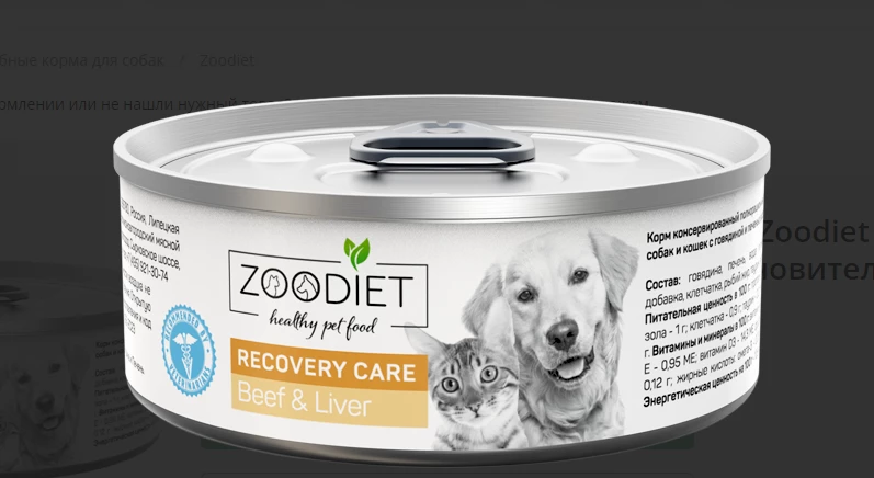 Влажные мясные корма ZOODIET – это полнорационные ветеринарные диеты для собак и кошек, разработанные технологами компании «Четвероногий Гурман» с учетом рекомендаций нутрициологов, а также в полном соответствии с требованиями ГОСТ Р 55453-2022 «Корма для непродуктивных животных». Линейка включает в себя диетическое питание для животных с пищевой аллергией, склонностью к ожирению, с чувствительным пищеварением, а также для животных, которым требуются специальные рационы при ХПН, болезнях печени, для профилактики МКБ и для улучшения состояния в послеоперационный или восстановительный период. Рекомендации по кормлению: см. таблицу. Суточную норму следует разделить на 2-3 приема кормления. Корм должен быть комнатной температуры. У животного всегда должен быть доступ к свежей питьевой воде. Рекомендуемая начальная продолжительность кормления: до 6 месяцев. Легкоусвояемый корм. Перед применением или продлением периода кормления рекомендуется проконсультироваться с ветеринарным врачом.