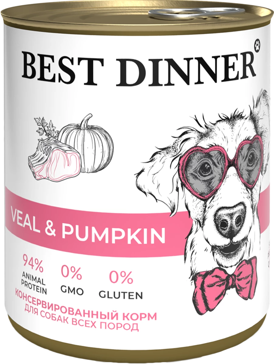 Фаршеобразная консистенция. Рацион, разработанный с учетом физиологических особенностей собак. Натуральная телятина - источник полноценного животного белка, необходимого для восстановления мышц, кроветворения и других жизненно важных функций; коллагена и эластина, поддерживающих здоровье суставов. Являясь диетическим мясом, телятина не позволит собаке набрать лишний вес, не перегрузит ее пищеварение и почки. Best Dinner Телятина с тыквой изготовлен только из натуральных компонентов без искусственных красителей, консервантов и ароматизаторов, обогащен всеми необходимыми витаминами и минеральными веществами. Состав: телятина, субпродукты мясные (в том числе печень, легкое, трахея, сычуг), тыква, растительная клетчатка, натуральная желирующая добавка, растительное масло, рыбий жир, хондроитин, минеральные вещества, питательные добавки, юкка Шидигера, вода