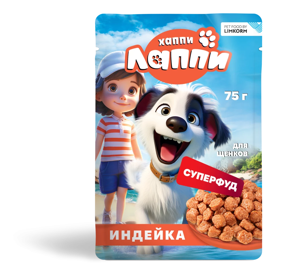 Корм для щенков ТМ Хаппи Лаппи с индейкойКонсервированный полнорационный корм Хаппи Лаппи обогащен витаминами, минералами и питательными веществами, которые необходимы для организма домашнего животного. В состав корма входят натуральные ингредиенты: мясо, птица, полезные злаки, комплекс витаминов и минералов, таурин, шиповник, цикорий, морская капуста, которые обеспечивают полноценное питание, поддерживает здоровье и укрепляет иммунитет вашего питомца.