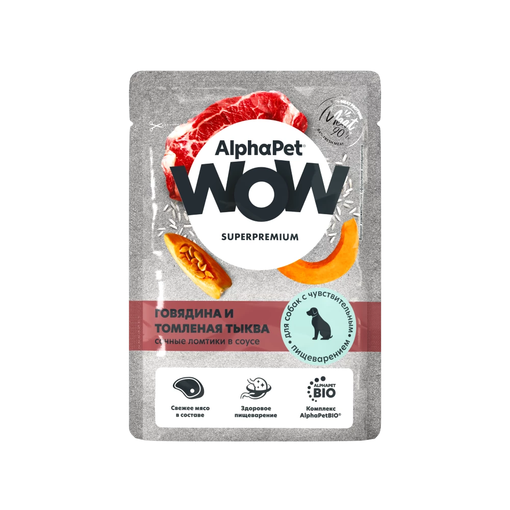 AlphaPet® WOW — Линейка питания для собак, владельцы которых хотят быть уверены в выборе лучшего качества по разумной цене. Максимально открытый и понятный состав кормов, приготовленных по инновационной технологии: свежее мясо в составе, доля мясного белка 76%, баланс витаминов и минералов, соответствующий физиологическим потребностям кошек.