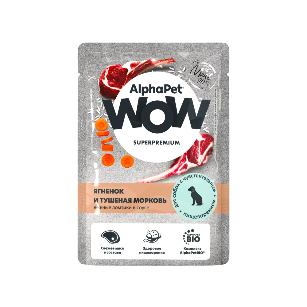 AlphaPet® WOW — Линейка питания для собак, владельцы которых хотят быть уверены в выборе лучшего качества по разумной цене. Максимально открытый и понятный состав кормов, приготовленных по инновационной технологии: свежее мясо в составе, доля мясного белка 76%, баланс витаминов и минералов, соответствующий физиологическим потребностям кошек.